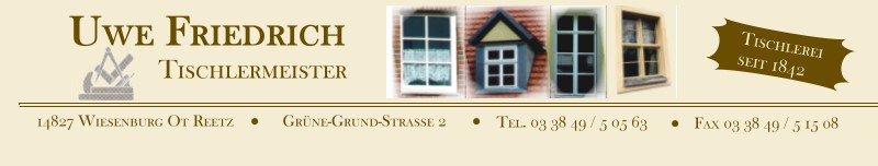 Tischlermeister Uwe Friedrich - Grüne-Grund-Straße 2 - 14827 Wiesenburg/Mark - Reetz